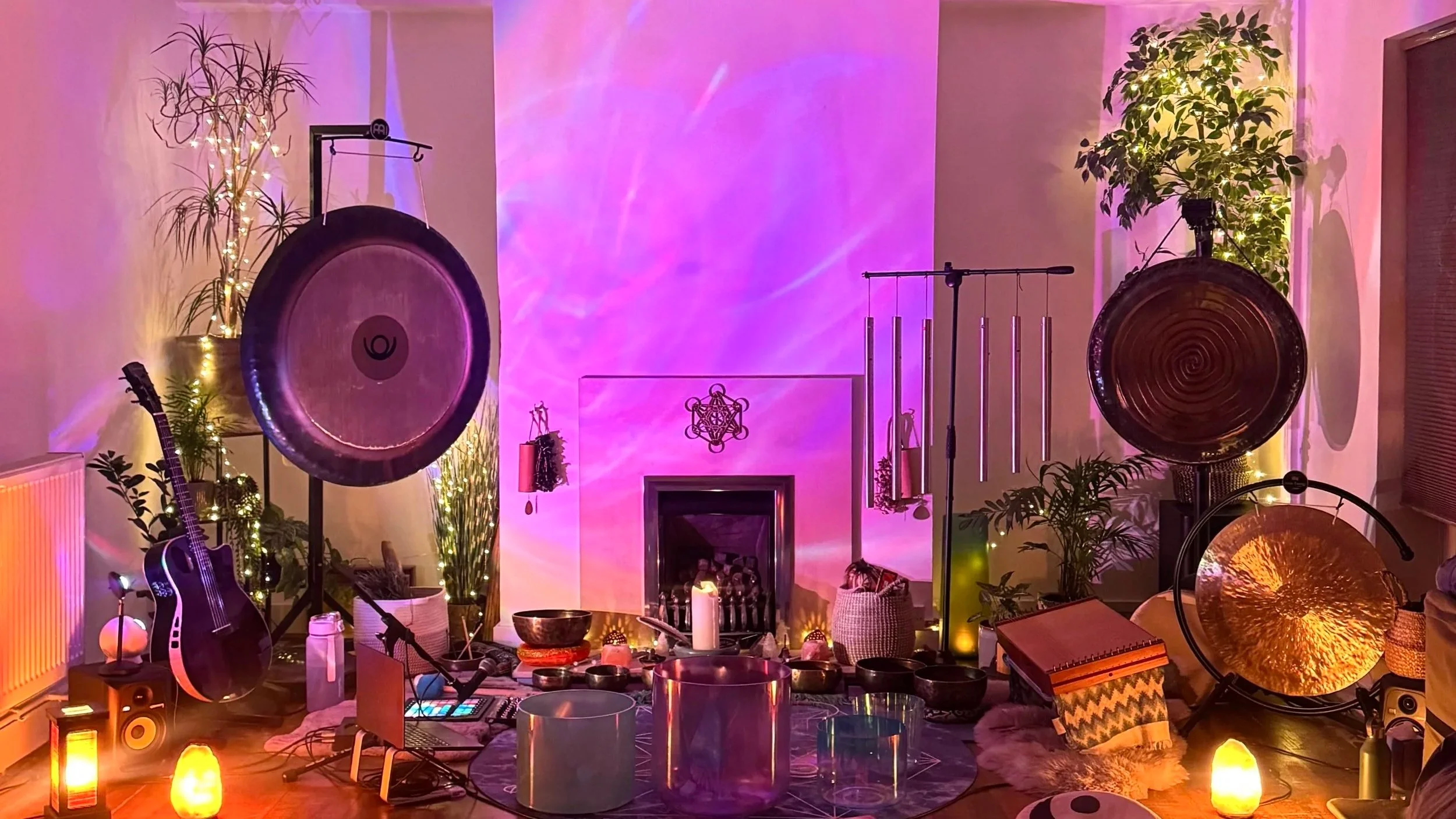 Sound Journey: A variety of instruments are used such as crystal singing bowls, gongs, Tibetan bowls, chimes, drums, tuning forks, and voice.